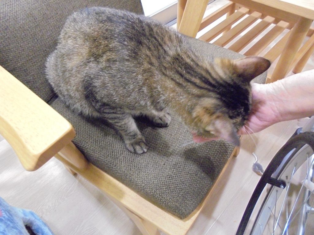 毛づくろいをしているめいちゃんを見て、ご入居者様が