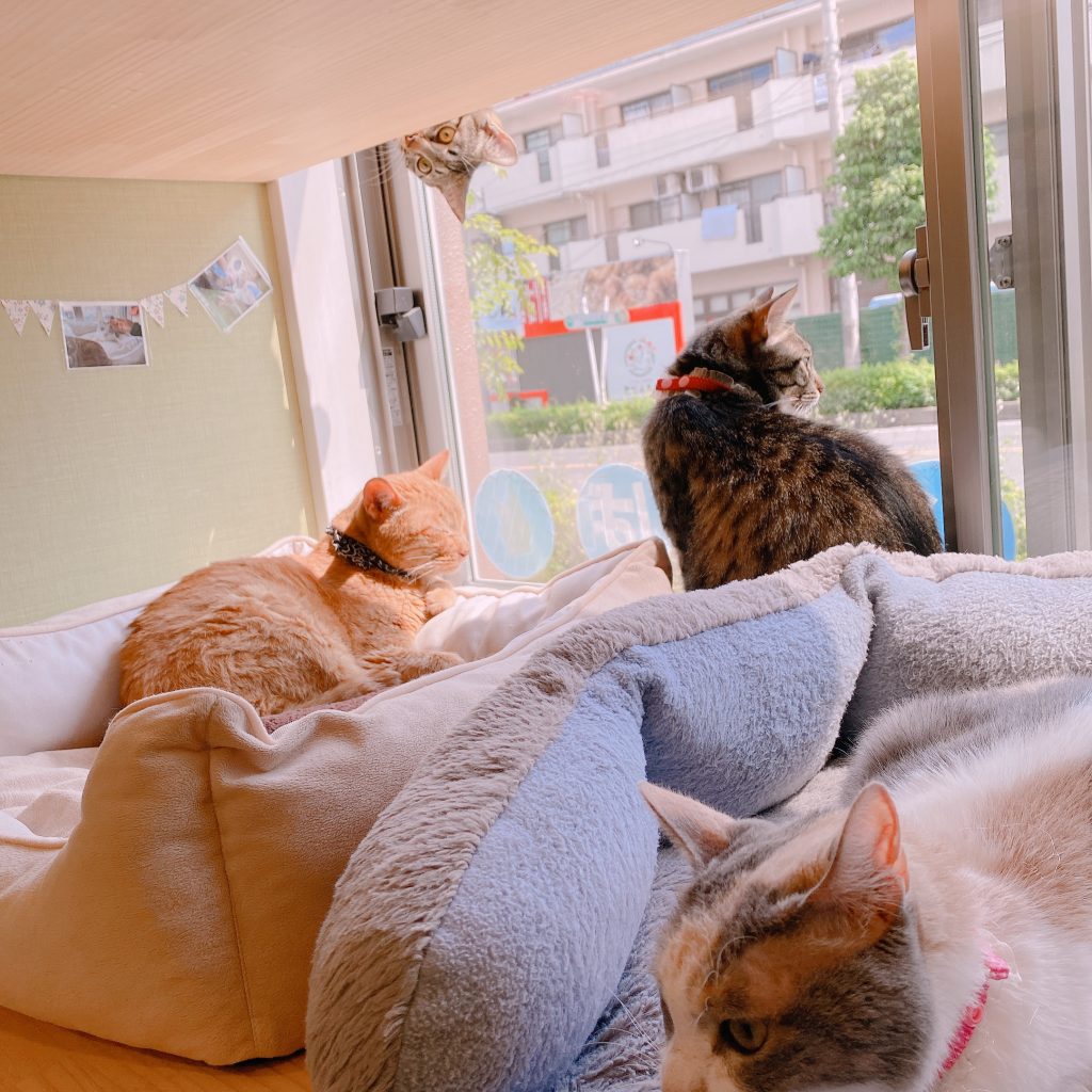 いつの間にか4匹が日向に集まっていました。仲良し! 可愛い!