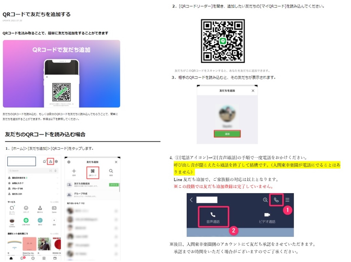 詳細は【窓越し面会について】及び【QRコードで友だち追加する】をご覧ください。