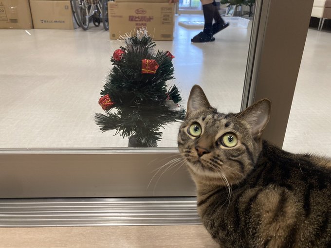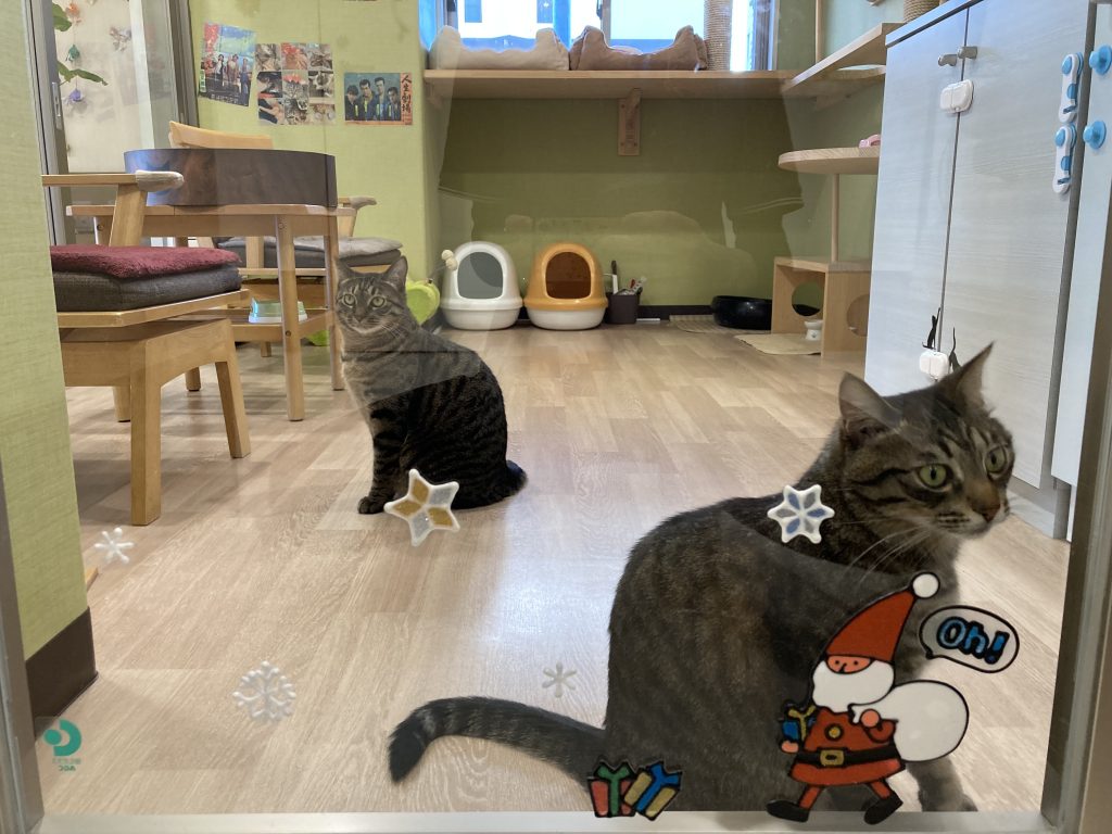 室内にいても季節を感じられてふれあい広場の猫達も満足そう。