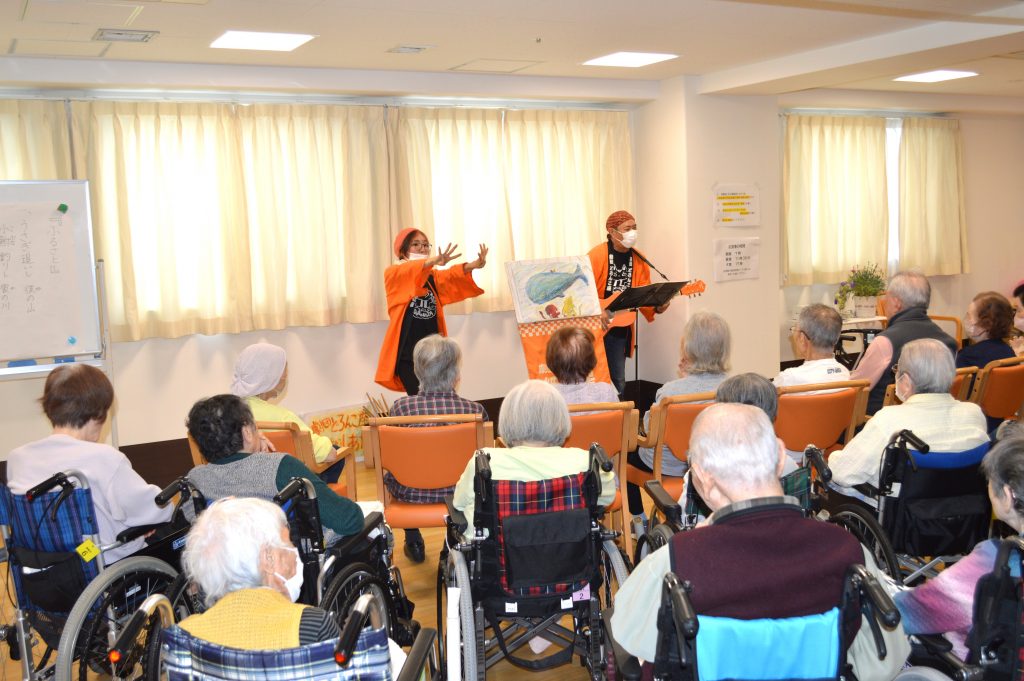 歌や楽器・ペープサードが飛び出し、ミュージカル調でとっても楽しい内容でした。