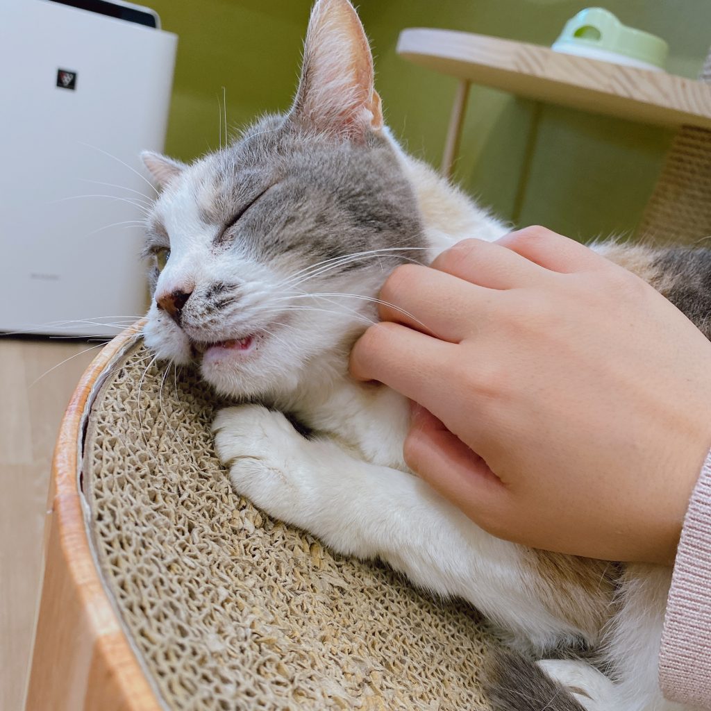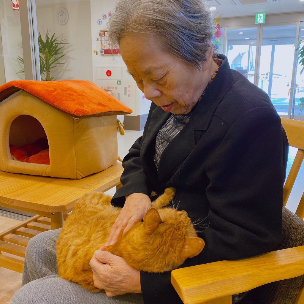 利用者様は「三毛猫が大好き、お家で飼っていたのははっきりとした柄だったけど、薄い三毛ちゃんもかわいいね」と沢山褒めていただいてくださっていました。